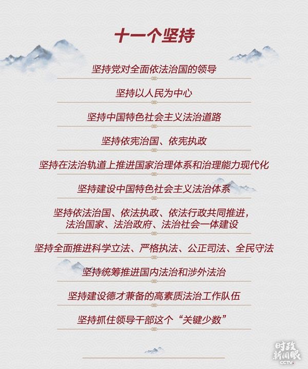 《時政新聞眼》注意到,2018年8月24日,習近平總書記主持召開中央全面依法治國委員會第一次會議時,曾把黨的十八大以來提出的一系列全面依法治國新理念新思想新戰(zhàn)略概括為“10個堅持”。