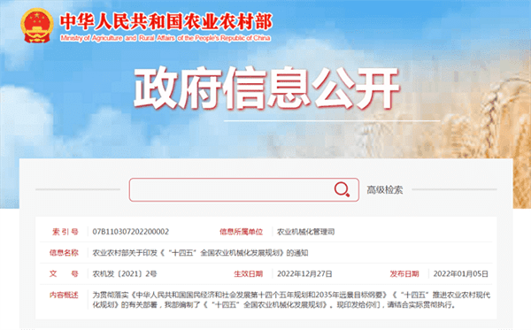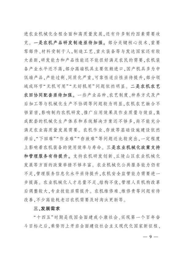 農(nóng)業(yè)農(nóng)村部關(guān)于印發(fā)《“十四五”全國農(nóng)業(yè)機(jī)械化發(fā)展規(guī)劃》的通知