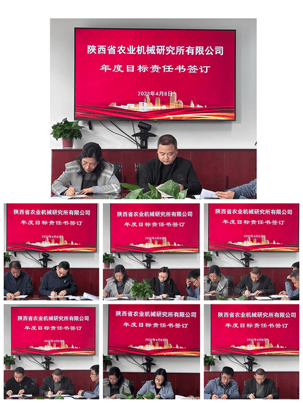 為壓實責(zé)任,全面落實公司年度目標(biāo)任務(wù),2023年4月8日上午,陜西省農(nóng)業(yè)機(jī)械研究所有限公司召開專題會議,簽訂2023年度部門目標(biāo)責(zé)任書,公司領(lǐng)導(dǎo)班子及各部門負(fù)責(zé)人參加會議。