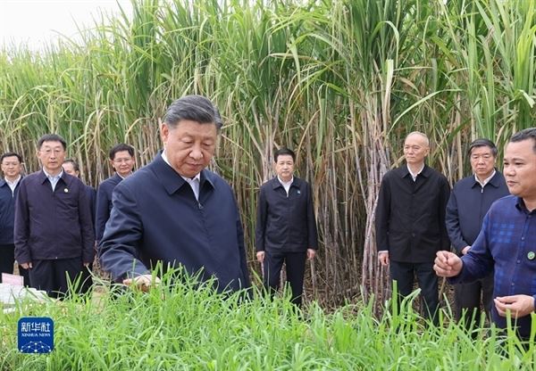14日下午,習近平到來賓市考察調研。在國家現(xiàn)代農業(yè)產業(yè)園黃安優(yōu)質“雙高”糖料蔗基地,習近平察看萬畝甘蔗林和機械化作業(yè)收割場景,聽取基地情況介紹。他走進甘蔗林,詳細了解甘蔗良種繁育技術要領,同蔗農、農機手和農技人員親切交流。習近平指出,廣西是我國蔗糖主產區(qū),要把這一特色優(yōu)勢產業(yè)做強做大,為保障國家糖業(yè)安全、促進蔗農增收致富發(fā)揮更大作用。要積極培育和推廣良種、提高機械化作業(yè)水平,建設好現(xiàn)代農業(yè)產業(yè)園。要探索建立更加穩(wěn)定的利益聯(lián)結機制,讓廣大農民共享農村改革和發(fā)展成果。他祝愿鄉(xiāng)親們的生活像甘蔗一樣甜蜜。
