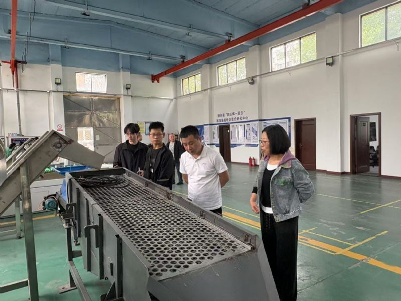 韓明剛一行調(diào)研了陜西省“四主體一聯(lián)合”林果裝備工程技術(shù)研究中心,介紹了機電學(xué)院實訓(xùn)中心、團隊技術(shù)成果及參加省市大賽情況。鄒超重點介紹了陜西省“四主體一聯(lián)合”林果裝備工程技術(shù)研究中心組建運行情況和相關(guān)農(nóng)機裝備研制等工作進展,帶領(lǐng)參觀了核桃分級加工生產(chǎn)線、低速電動遙控底盤等科技成果。雙方就后續(xù)校企人才培養(yǎng)、技術(shù)合作、加強溝通等事項進行了充分交流。