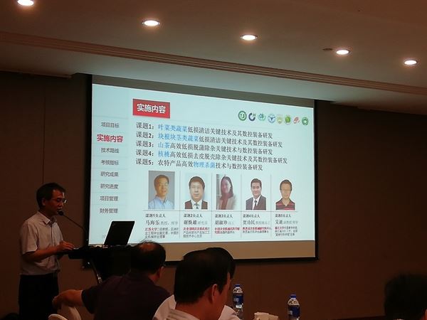 會上,江蘇大學(xué)、農(nóng)業(yè)部南京農(nóng)業(yè)機(jī)械化研究所、中國農(nóng)業(yè)機(jī)械化科學(xué)研究院、陜西省農(nóng)業(yè)機(jī)械化研究所、浙江大學(xué)等5家項(xiàng)目課題承擔(dān)單位負(fù)責(zé)人分別就各自負(fù)責(zé)的課題1:葉菜類蔬菜低損清潔關(guān)鍵技術(shù)及其數(shù)控裝備研發(fā)、課題2:塊根塊莖類蔬菜低損清潔關(guān)鍵技術(shù)及其數(shù)控裝備研發(fā)、課題3:山茶高效低損脫蒲除雜關(guān)鍵技術(shù)及其數(shù)控裝備研發(fā)、課題4:核桃高效低損去皮脫殼除雜關(guān)鍵技術(shù)及其數(shù)控裝備研發(fā)、課題5:農(nóng)特產(chǎn)品高效物理殺菌技術(shù)與數(shù)控裝備研發(fā),匯報(bào)了研究內(nèi)容與實(shí)施方案。