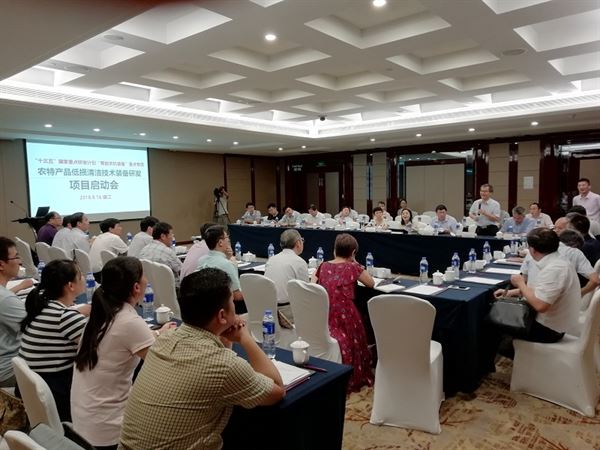 2018年8月16日上午,國家重點(diǎn)研發(fā)計(jì)劃“智能農(nóng)機(jī)裝備”重點(diǎn)專項(xiàng)“農(nóng)特產(chǎn)品低損清潔技術(shù)裝備研發(fā)”項(xiàng)目啟動會在江蘇鎮(zhèn)江召開,陜西科技控股集團(tuán)陜西省農(nóng)業(yè)機(jī)械研究所作為項(xiàng)目課題四“核桃高效低損去皮脫殼除雜關(guān)鍵技術(shù)及其數(shù)控裝備研發(fā)”的負(fù)責(zé)單位參加了此次會議。會議由科技部中國農(nóng)村技術(shù)開發(fā)中心項(xiàng)目專員柏雨岑、項(xiàng)目流動專員童俊華副教授主持,江蘇大學(xué)校長顏曉紅,江蘇省科技廳農(nóng)村處調(diào)研員顧俊,鎮(zhèn)江市科技局副局長楊國祥、農(nóng)村科技處處長趙雙福等領(lǐng)導(dǎo),以及山東理工大學(xué)副校長易維明教授、上海交通大學(xué)劉成良教授、北京國嘉瑞會計(jì)師事務(wù)所所長徐勝懷高級會計(jì)師、四川省食品發(fā)酵工業(yè)研究設(shè)計(jì)院院長陳功研究員、農(nóng)業(yè)部南京農(nóng)業(yè)機(jī)械化研究所黨委書記胡志超研究員、中國農(nóng)業(yè)科學(xué)院農(nóng)產(chǎn)品加工研究所畢金峰研究員、浙江省農(nóng)業(yè)科學(xué)院食品科學(xué)研究所郜海燕研究員、江南大學(xué)機(jī)械工程學(xué)院院長盧立新教授、浙江理工大學(xué)科研院常務(wù)副院長武傳宇教授、中國農(nóng)業(yè)大學(xué)工學(xué)院彭彥昆教授等國家科技部專家組成員出席,項(xiàng)目首席專家、各課題負(fù)責(zé)人及項(xiàng)目組主要成員等參加。