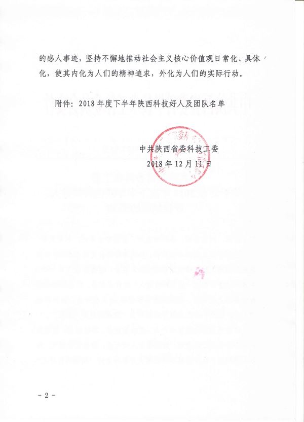 根據(jù)省委科技工委《關(guān)于公布2018年度下半年陜西科技好人評議結(jié)果的通知》的(陜科工辦發(fā)[2018]93號)文件通知,我所農(nóng)業(yè)工程研究室張鵬霞同志被省委科技工委評為下半年“陜西科技好人”。
